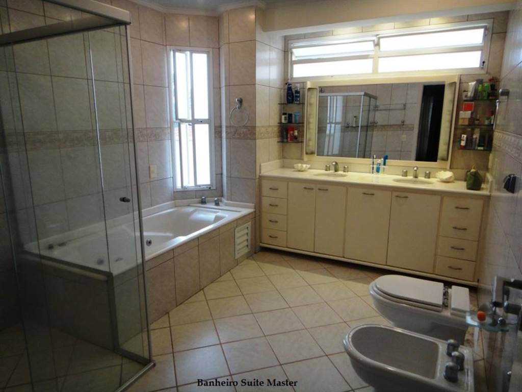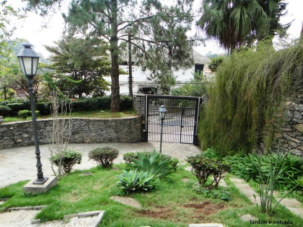 Terreno de 1.150 m²Área construída, mais ou menos 550 m²A frente da casa mede mais ou menos 33 m, totalmente revestido com pedras rachão de 50 cm de largura.3 Suites sendo uma máster, todos com armários embutidos e closet na suíte máster, Sala de Jantar ampla com Bay Window, sala de Visita grande c/ lareira, home theater.Cozinha enorme com armários, amplo lavabo, varanda toda a frente da casa, com vista sensacional, área de serviços ampla com armários, entrada de serviço lateral, suíte de empregada, banheiro de serviço, quarto de passadoria com armários, quarto de máquina da piscina e depósito.Na parte da frente:Vários jardins com arvores com mais de 40 anosNos fundos do terreno:Escada lateral para os jardins do fundo da casa.Salão de Festas, suíte de hóspede, piscina, churrasqueira e forno para pizza, banheiro com chuveiro para atender a piscinaAmplos Jardins, com várias árvores, como pinheiros, café, amora, pitanga, romã, goiaba, ameixa.Vários coqueiros, dendezeiro, tamareira.Garagem para 6 carrosPortão Eletrônico